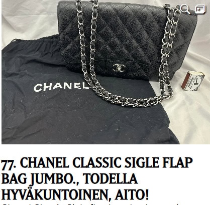 Kun selaa kaupan tämänkertaista myyntilistaa, löytää useitakin merkkilaukkuja, nimenomaan Vuittonia ja Chanelia.