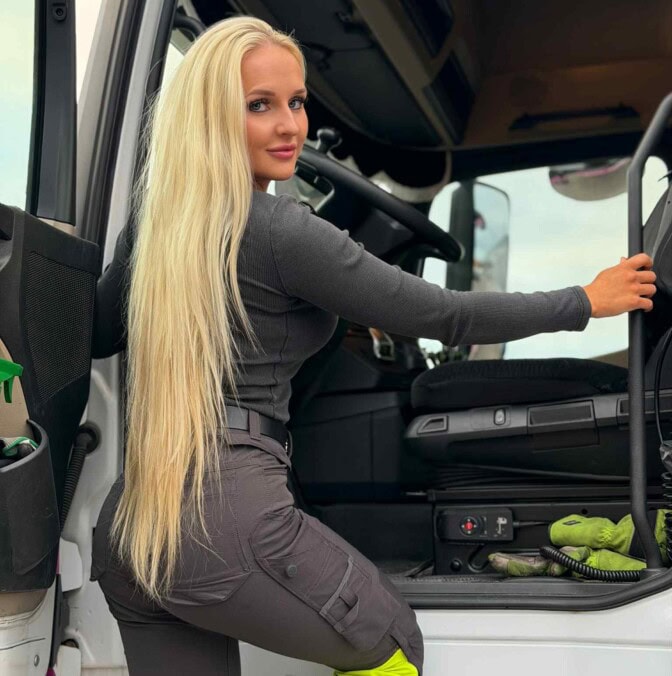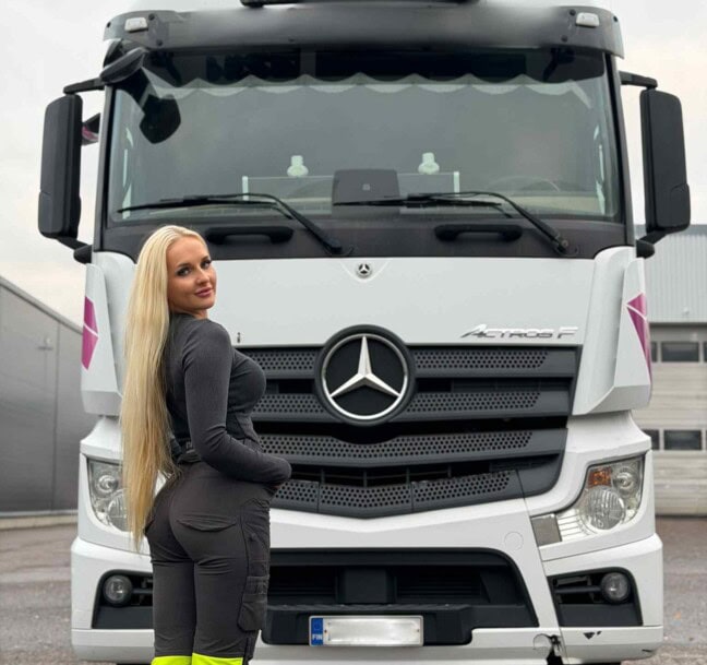 25-vuotias mallin töistäkin julkisuudessa tunnettu Emelie Nylund kääntää rekkoja ja päitä.