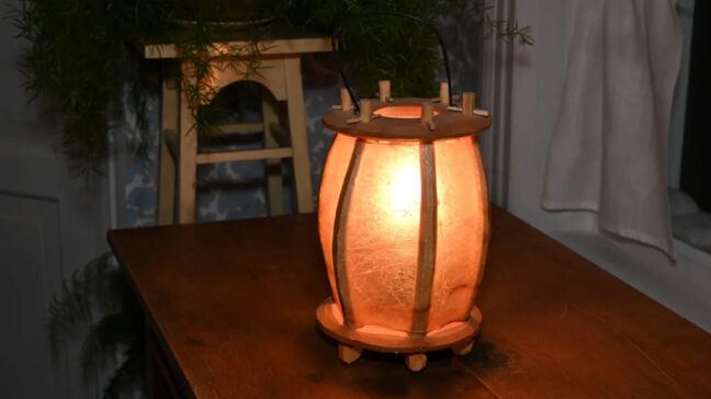 Kurssilla veistettiin lyhdyn puuosat, muotoiltiin metalliosat ja lopuksi pingotettiin virtsarakko rungon päälle. Moninaista tekemistä siis. Kurssilla ansioitui siis puu- ja metalliseppyyden lisäksi virtsarakkosepäksi.