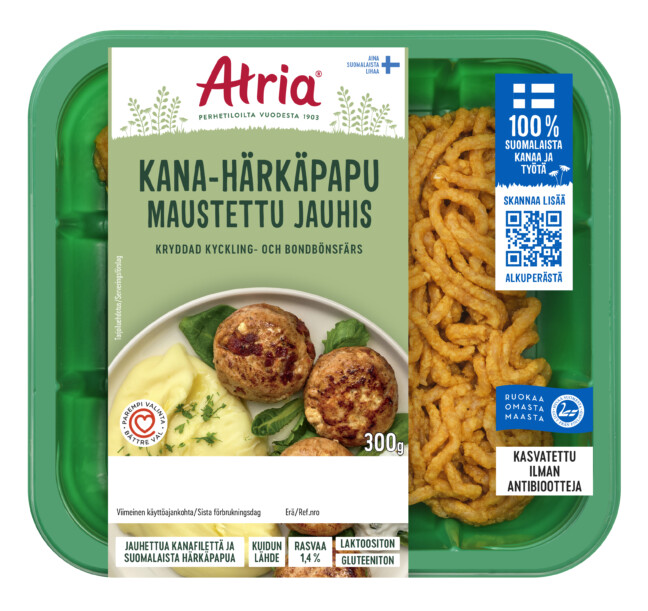 Nyt kerrotaan, kuinka Atria on kehitellyt uudenlaisen jauhelihan. Se on jo kaupoissa myynnissä. Siinä on 48 prosenttia suomalaista kanaa ja 48 prosenttia suomalaista härkäpapua.